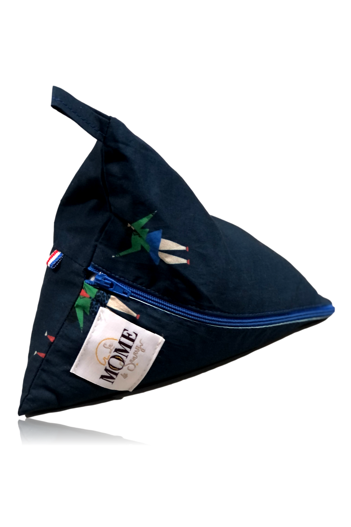 Déhoussable par fermeture à zip, permettant de laver le tissu. La doublure est en lin blanc renfermant des graviers fins pour servir de poids.